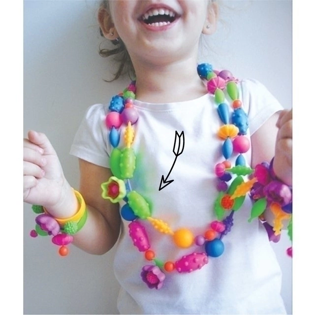 Balde con piezas para encastrar y crear tus propias joyas sin la necesidad de usar hilo! Une las piezas unas con otras, encastrando las puntas redondeadas en los orificios, presioná para que queden firmes.