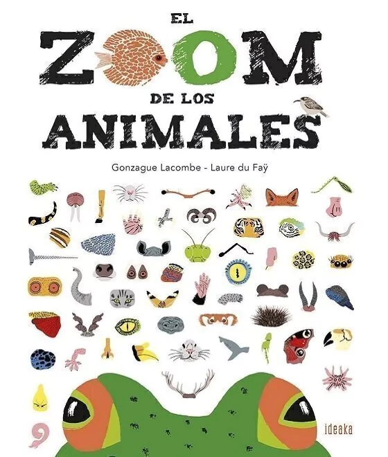 Las ocho primeras dobles páginas de este libro se plantean como un juego para descubrir los animales a partir de partes de su cuerpo. Cada doble muestra: patas, ojos, alas, cuernos, pieles, colas, narices y orejas en las que el lector deberá identificar más de una veintena de animales.