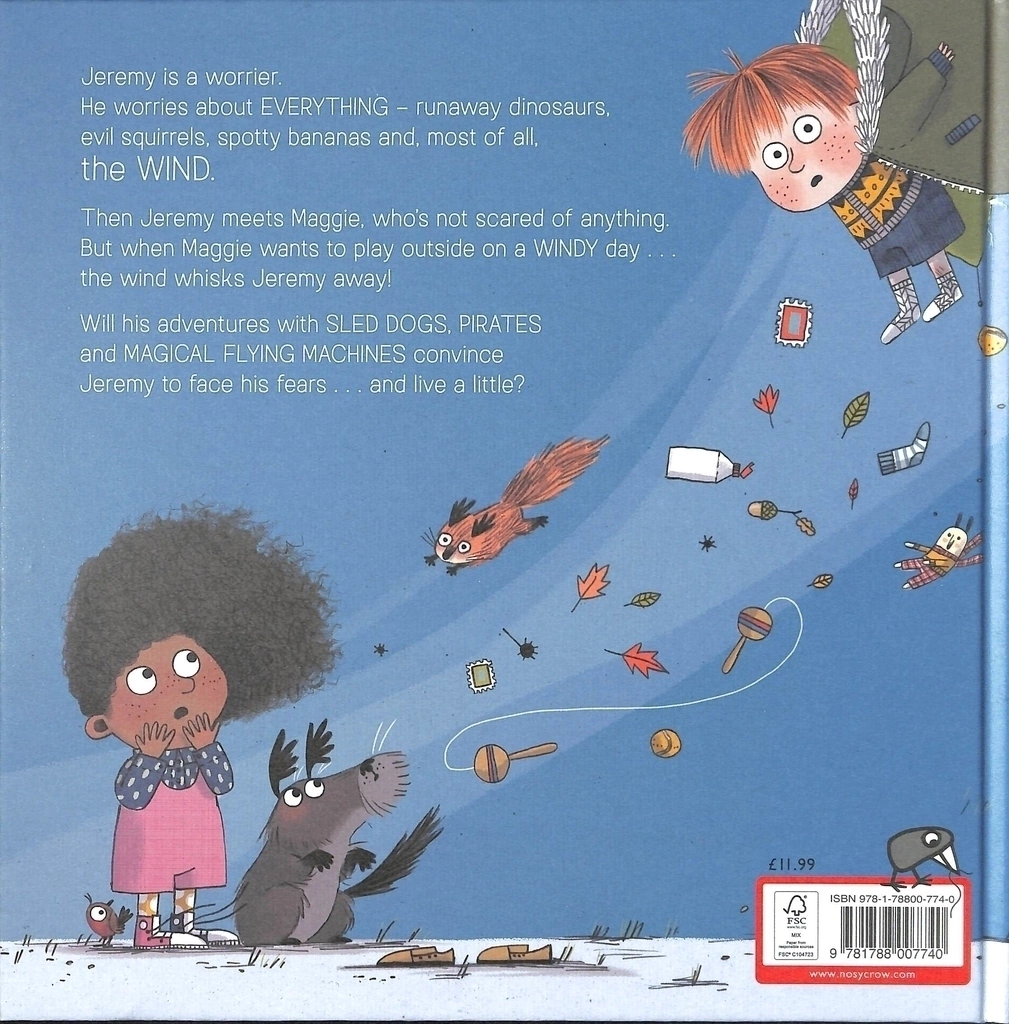 Jeremy es un preocupado. Le preocupan los calcetines raros, los plátanos manchados, las ardillas malvadas, las tostadas quemadas, los dinosaurios y, sobre todo. . . ¡el viento! Su amiga Maggie no está preocupada por nada; después de todo, ¿qué es lo peor que podría pasar? Pero cuando Maggie decide salir y jugar con el viento, Jeremy debe actuar rápido para mantenerla fuera de peligro, y pronto descubrirá que un poco de coraje conduce a las aventuras más emocionantes.