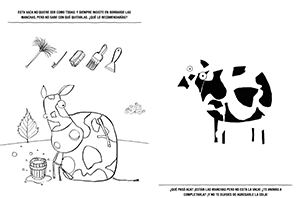 Vaca siempre está muy preocupada por sus manchas, se las quita, se las pone... y hoy está muy aburrida. ¿Qué te parece si jugamos con ella?