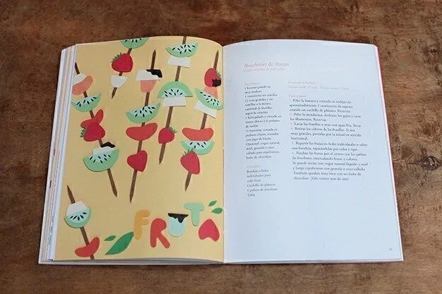 El recetario comienza descubriendo los distintos comercios donde se consiguen los ingredientes principales con los que se preparan las recetas. Luego se presentan las técnicas básicas de cocina para ir familiarizándose con ellas. A través de las recetas, los niños aprenderán a lavar, medir, mezclar, batir, amasar, pisar, adornar y mucho más.