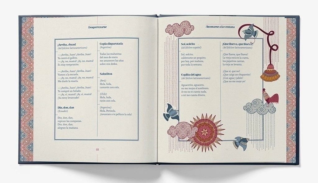 Si pensamos en la construcción de un nido, podemos imaginar el tiempo y cuidado que lleva. Crear un lugar cómodo y mullido para recibir a los pichones que están por nacer. Así de cálido y confortante es este libro-disco, construido con gran detalle y dedicación. La minuciosa selección nos lleva por diferentes regiones. Las letras, cantadas por Teresa Usandivaras y Pablo Spiller, se entremezclan con la cálida voz de la escritora Laura Devetach, que recita y nos convida algunos versos.
