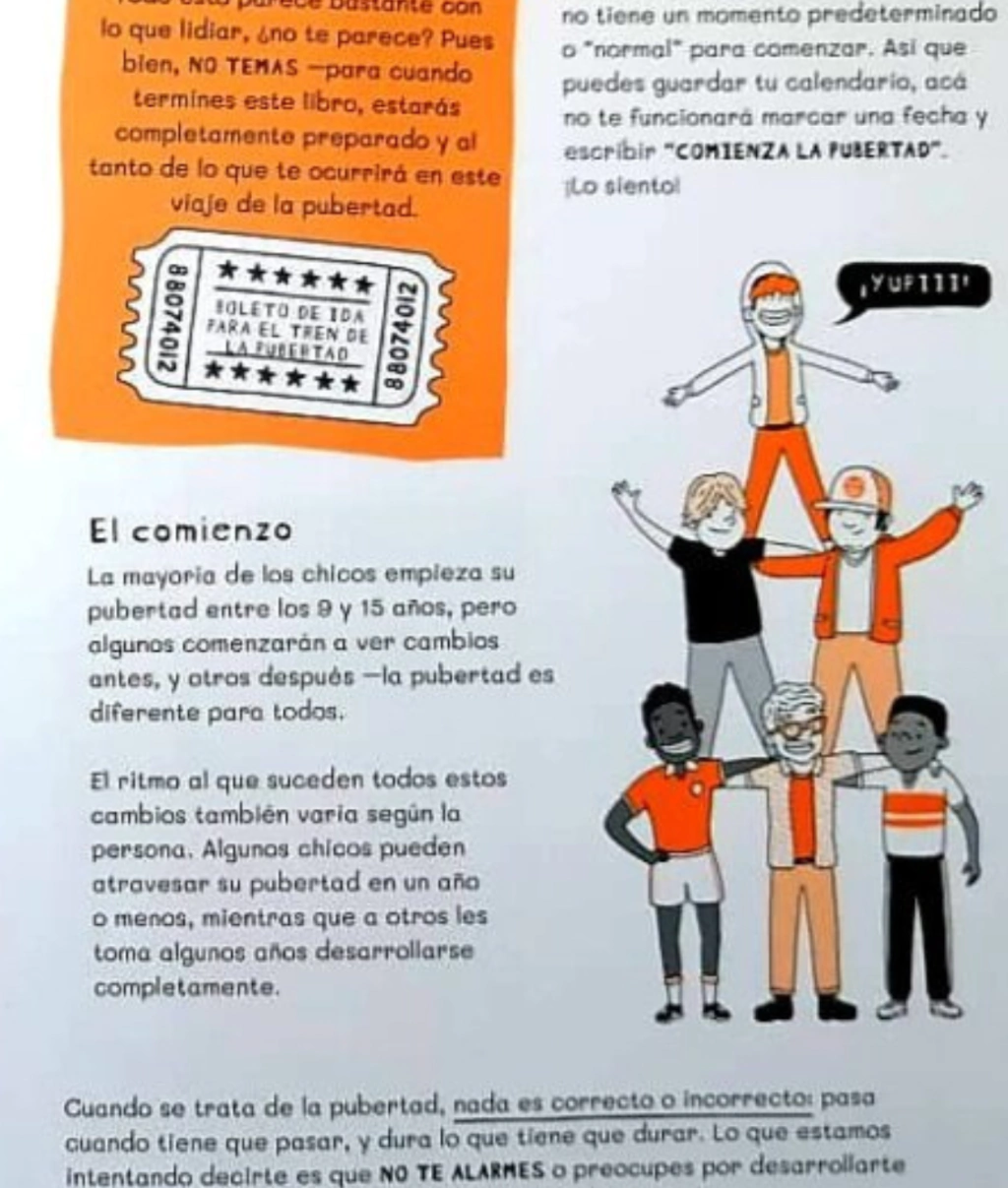La pubertad no solo afecta a aquellos que la están atravesando, también puede ser una etapa difícil y abrumadora para las familias y los profesores. Por eso, este libro fue diseñado para ayudar a los chicos que están comenzando esta importante etapa de transformaciones con una serie de consejos —cómo y cuándo comenzar a afeitarse, cómo controlar esos malos olores, saber llevar el ciberacoso, la vida escolar y respetar la igualdad de género—, pero también es una guía para padres, tutores y profesores. Puede ser una gran idea que lean este libro juntos para hablar abiertamente de distintos temas, además de enseñarle que nunca debe sentirse avergonzado de pedir ayuda cuando lo necesite.