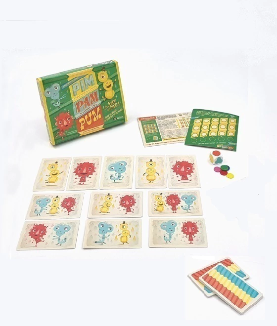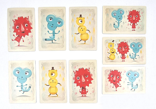 Se da vuelta una carta, si contiene un monstruo del color del dado, puede llevarse la carta y terminar el turno, o puede elegir seguir el juego y dar vuelta otra carta, siempre que contenga el monstruo, se puede seguir, pero a no forzar mucho la suerte, que puede fallar y si das vuelta un monstruo de otro color, no te llevarás nada y todas las cartas se vuelven a dar vuelta. A usar la memoria y recordar donde está cada mosntruo, así en tu turno te llevás mas cartas!