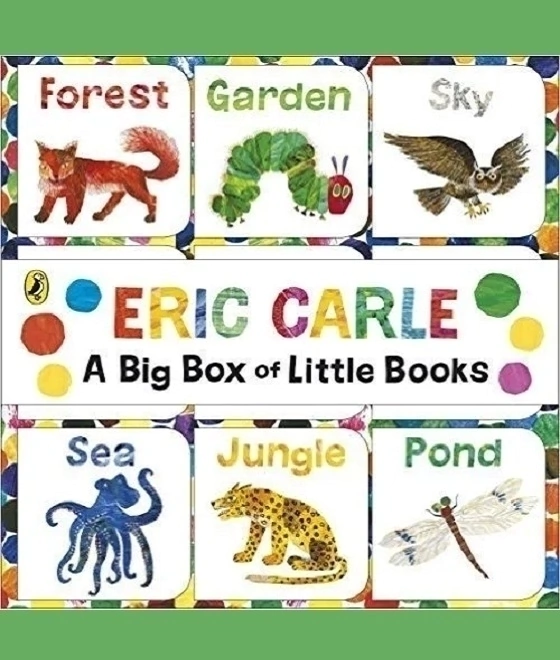 Nueve libros de cartón grueso llenos de los animales fantásticos de Eric Carle: ¡dalo vuelta para obtener una sorpresa, un rompecabezas de Very Hungry Caterpillar! ¿Quién vive en la jungla? ¿Qué puedes ver en tu estanque? Únete a The Very Hungry Caterpillar y a todos sus amigos animales en esta caja resistente con cierre magnético, que contiene nueve mini libros de cartón perfectos para que las manos pequeñas exploren. Cada libro está lleno de animales asombrosos, y las contraportadas se unen para hacer un hermoso rompecabezas de la oruga hambrienta. Con obras de arte clásicas y elegantes de Eric Carle, esta es una gran colección de regalos que les encantará a los niños.